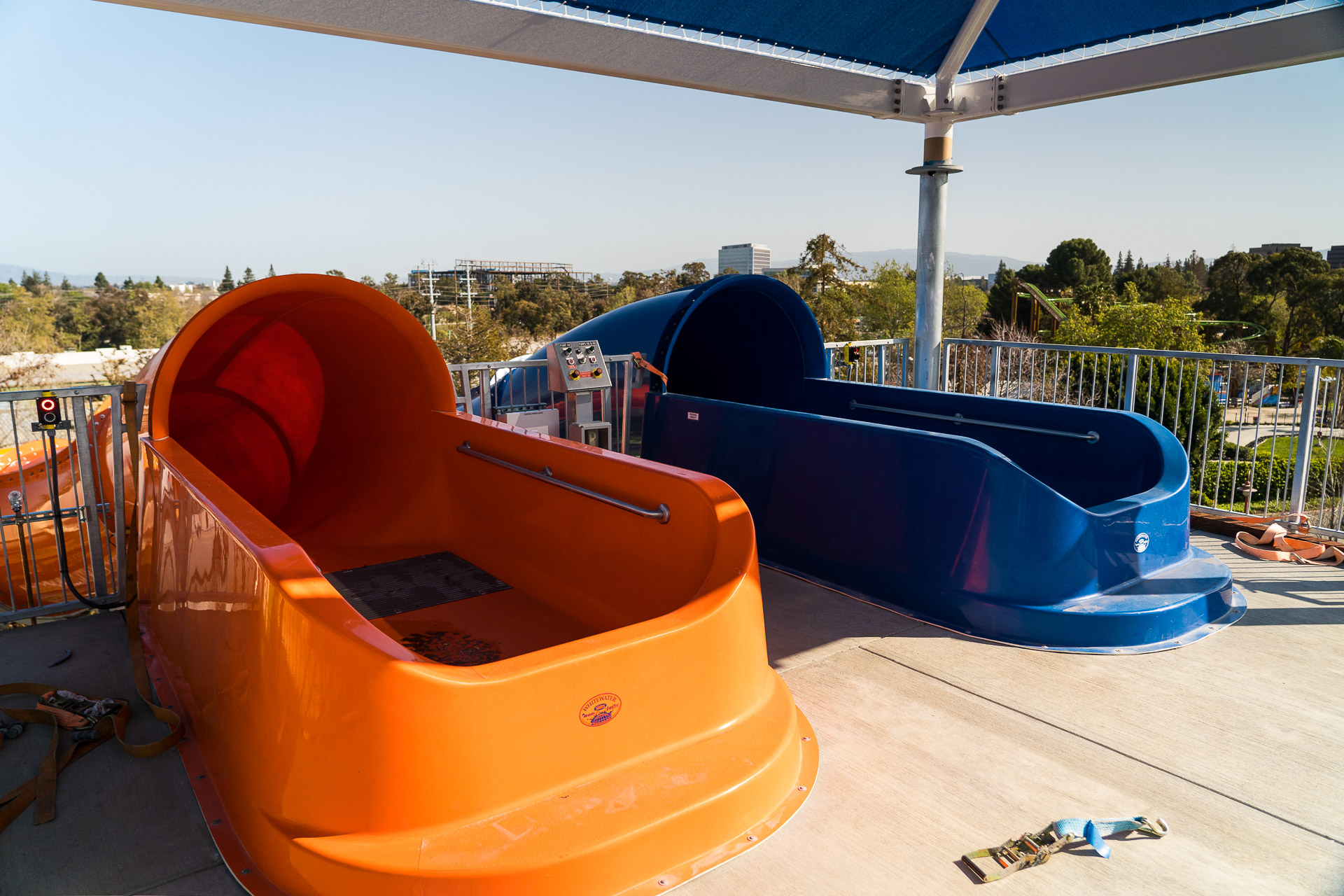 I'm grouping a couple of slides together into one. Makes sense to me since they're all at the tower complex in the center of the water park! The slides formerly known as Didgeridoo Falls, Tasmanian Typhoon and Down Under Thunder have become Coastal Cruz (like Santa Cruz), NorCal Wipeout and Mission Falls (maybe referring to Mission Bay). Similarly, expect new paint and themeing here. When the park opens, you'll see a new scrim on the backside of the slide replacing the old worn-out gray one.