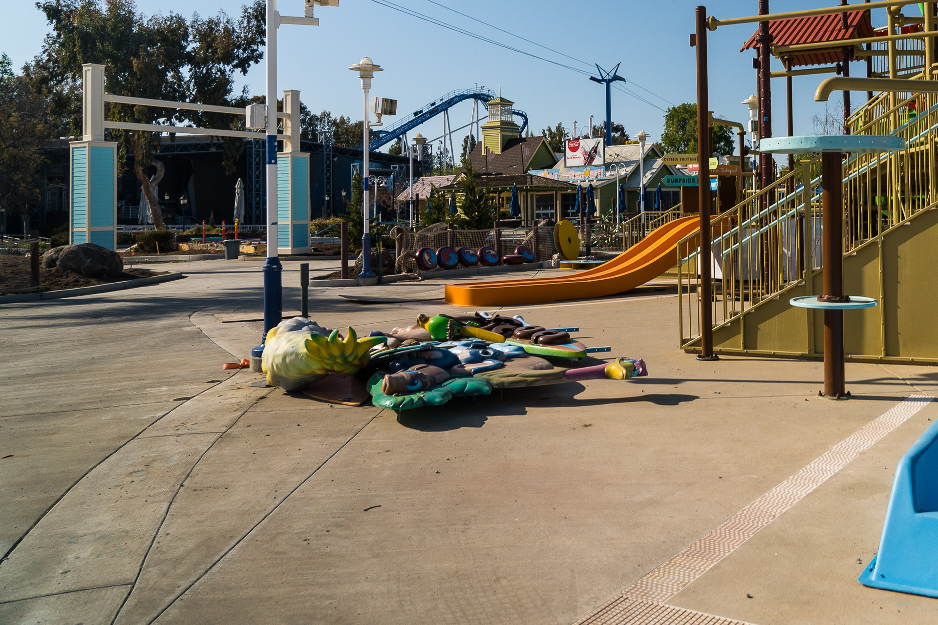 I went around the park with Danny Messinger, the Area Manager of Digital Marketing at CGA. We went all over the site and I'm excited to share these updates with you, including (I believe) some angles that haven't been seen before! So without any further ado: let's get into it! We'll go around counter-clockwise starting with Breakers Bay and working around to the new Pacific Surge complex.