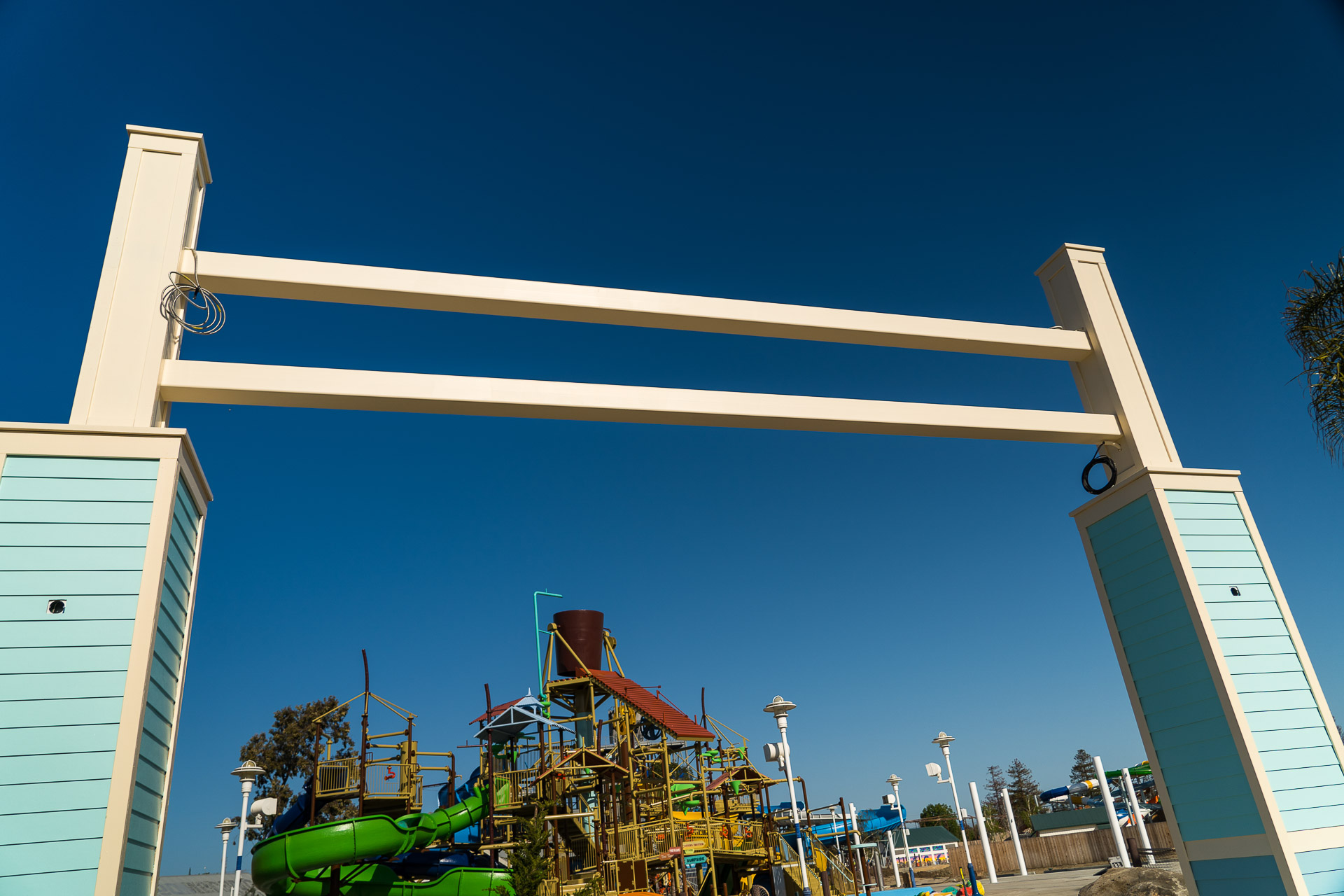I'm grouping a couple of slides together into one. Makes sense to me since they're all at the tower complex in the center of the water park! The slides formerly known as Didgeridoo Falls, Tasmanian Typhoon and Down Under Thunder have become Coastal Cruz (like Santa Cruz), NorCal Wipeout and Mission Falls (maybe referring to Mission Bay). Similarly, expect new paint and themeing here. When the park opens, you'll see a new scrim on the backside of the slide replacing the old worn-out gray one.
