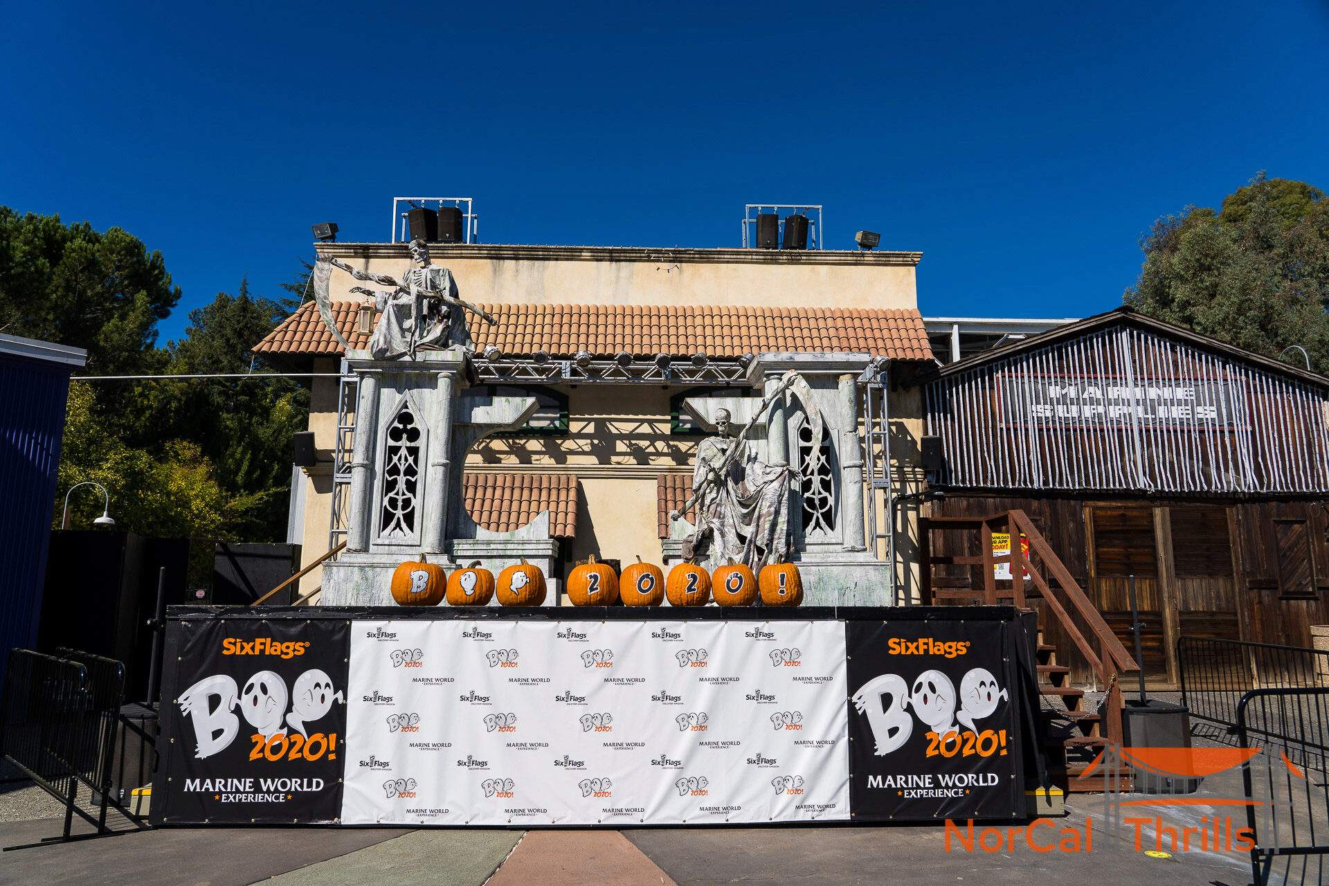 Although there were of course no proper scare zones, SFDK did decorate a few areas of the park with props and even added a couple of scareactor photo ops to allow people to take socially distant photos with the monsters.